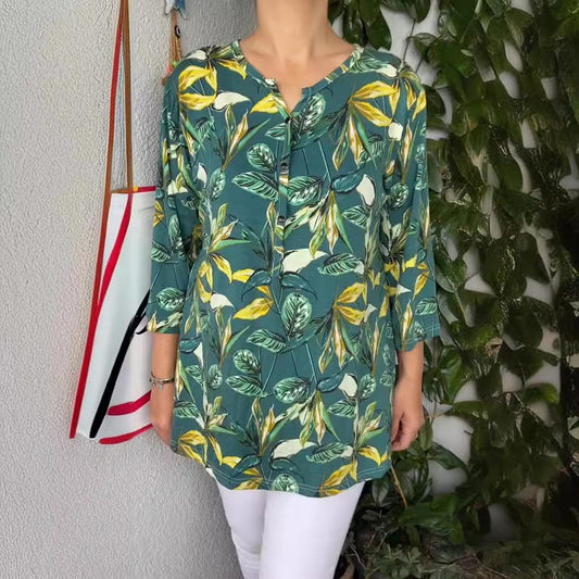 🔥2025 Tricou cu decolteu în V cu nasturi imprimate casual pentru damă