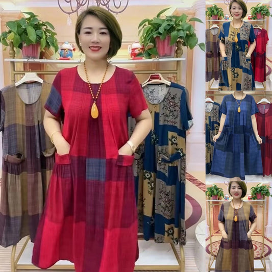 👗【50-100 kg】2025 Rochie de călătorie în carouri, la modă lejeră Rochie confortabilă pentru mamă
