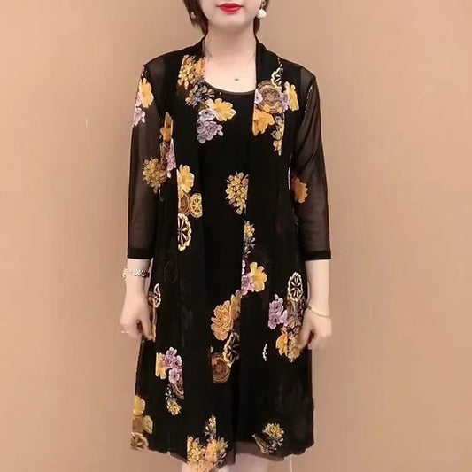 👗【M-4XL】Haine noi de vară pentru doamne de vârstă mijlocie, rochii din două piese.(Rochie + Jachetă)