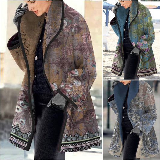 🔥🎊【S-3XL】Izvrstna ženska moda--Moden jesensko-zimski volnen plašč s potiskom na zaklop, visoka kakovost
